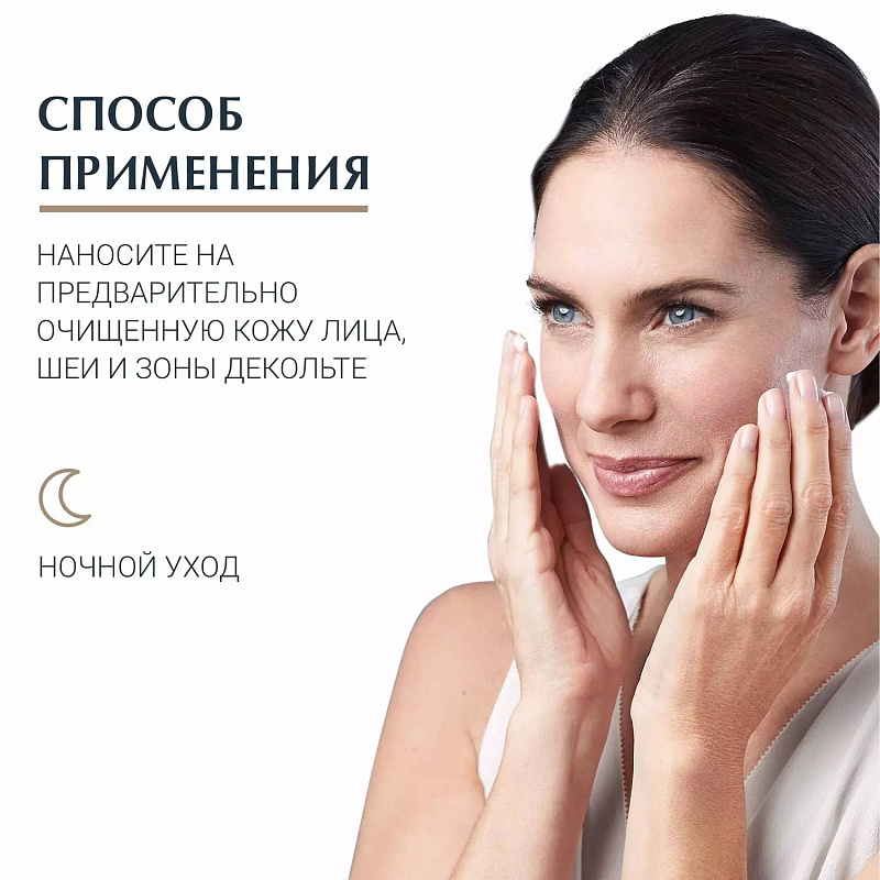 Наносите вечером на кожу лица, шеи и зоны декольте нежными массирующими движениями. Для лучшего эффекта сочетайте с кремом для дневного ухода за кожей Eucerin HYALURON-FILLER + ELASTICITY с SPF15+UVA.