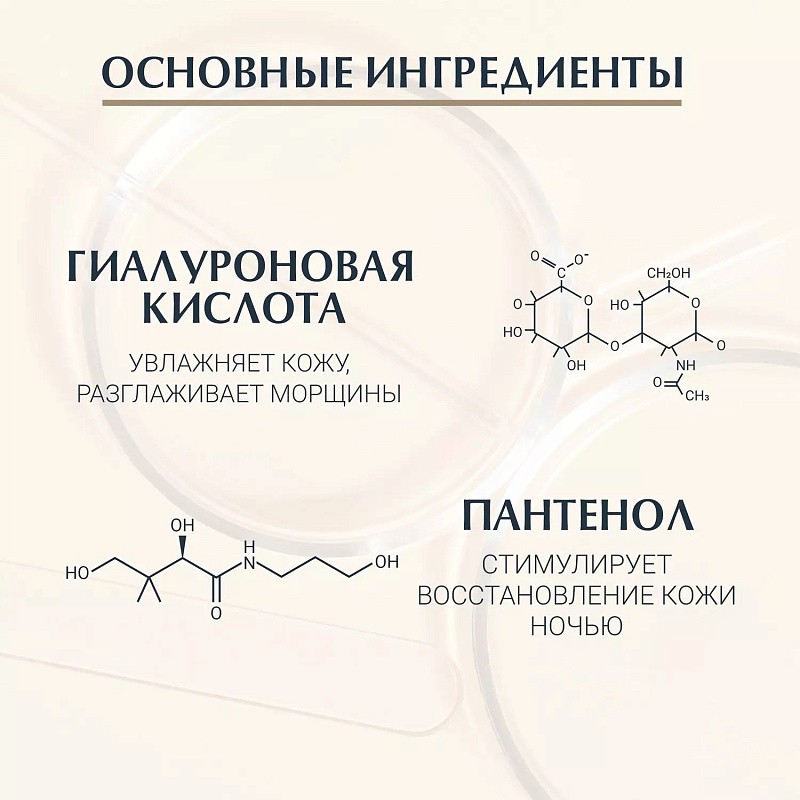 Уникальная формула обеспечивает многостороннее благоприятное действие, замедляющее старение. Инновационная композиция Eucerin, содержащая как высокомолекулярную, так и низкомолекулярную гиалуроновую кислоту, заметно разглаживает глубокие морщины, в то время как декспантенол поддерживает процесс регенерации кожи в течение ночи. Арктиин (активный агент, ускоряющий восстановление коллагена в клетках кожи) усиливает действие силимарина (мощного антиоксиданта, защищающего коллаген и эластин от разрушения и улучшающего кровообращение на клеточном уровне). Кожа становится упругой и гладкой и выглядит свежей и сияющей.