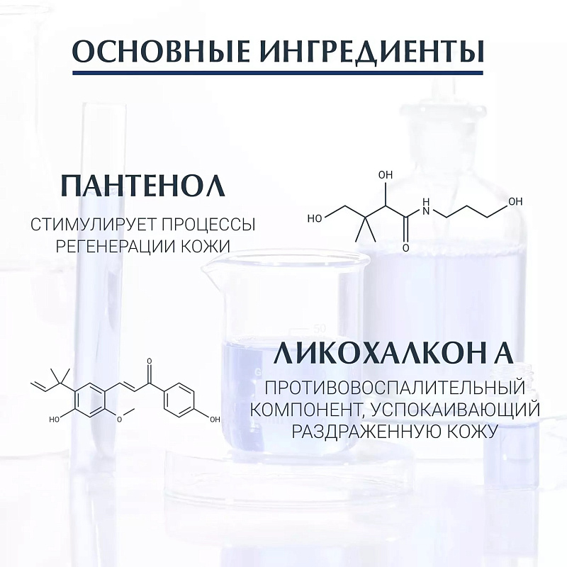 Пантенол, масло энотеры, масло ши, ликохалкон-A