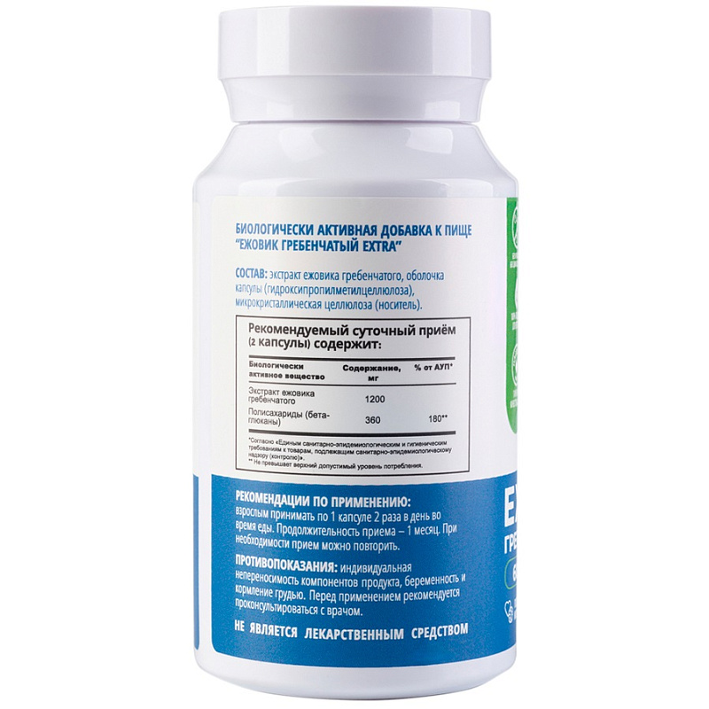 Ежовик гребенчатый Extra с высоким содержанием бета-глюканов эффективен для улучшения работы мозга, повышения уровня энергии, укрепления памяти и концентрации внимания. Это натуральный продукт с ноотропным действием в рабочей форме и полноценной дозировке.