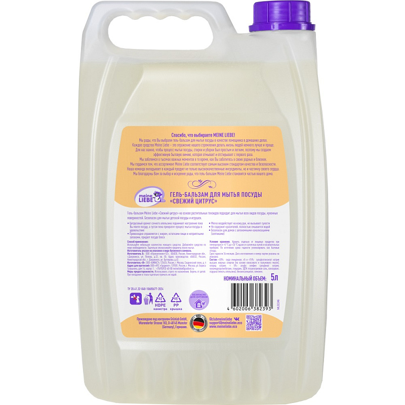 Гель-бальзам для мытья посуды «Свежий цитрус» 0+, 5 л