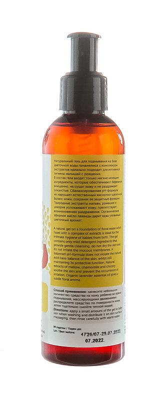 Гель для подмывания младенцев на основе цветочной воды гамамелиса, с дозатором 200 мл