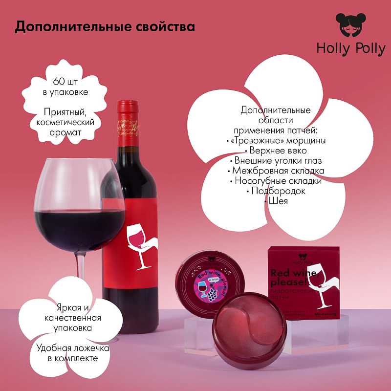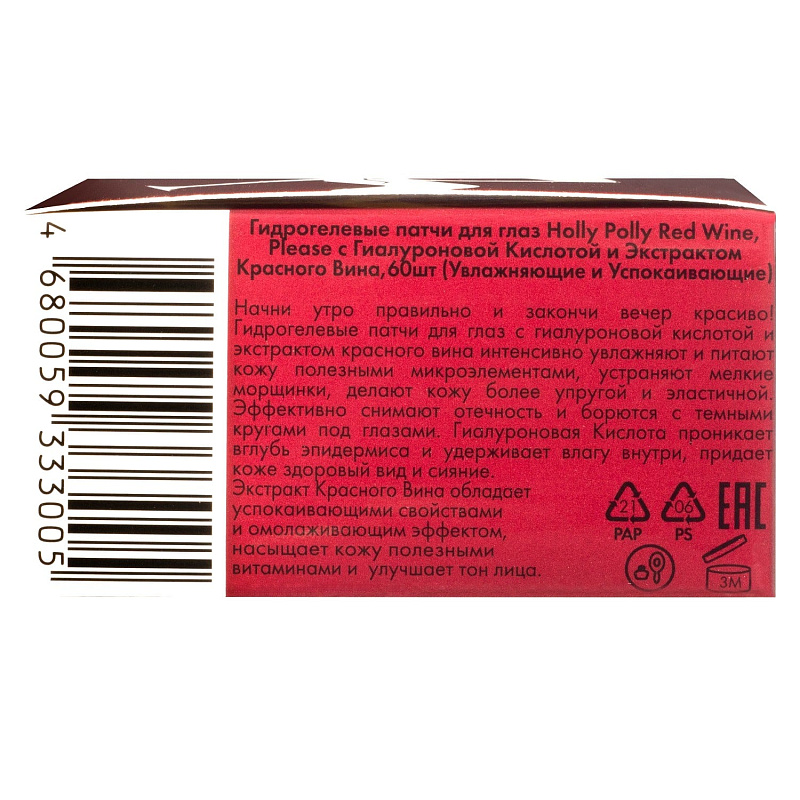 Гидрогелевые патчи с гиалуроновой кислотой и экстрактом красного вина Red Wine, please!, 60 шт
