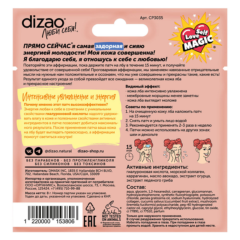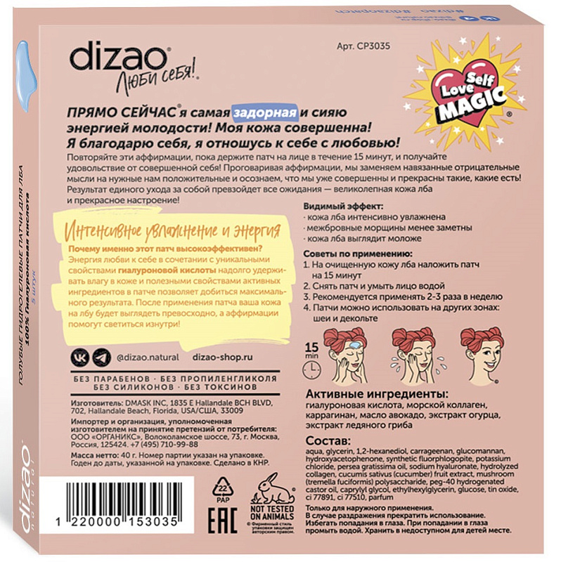 Голубые гидрогелевые патчи для лба "100% гиалуроновая кислота", 1 пара