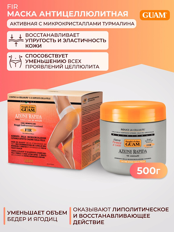 Состав: черный турмалин, морские водоросли guam, глина, фитоэкстракты фукуса, конского каштана и плюща, эфирные масла душицы, куркумы, имбиря и гвоздики, ментол, разогревающий комплекс