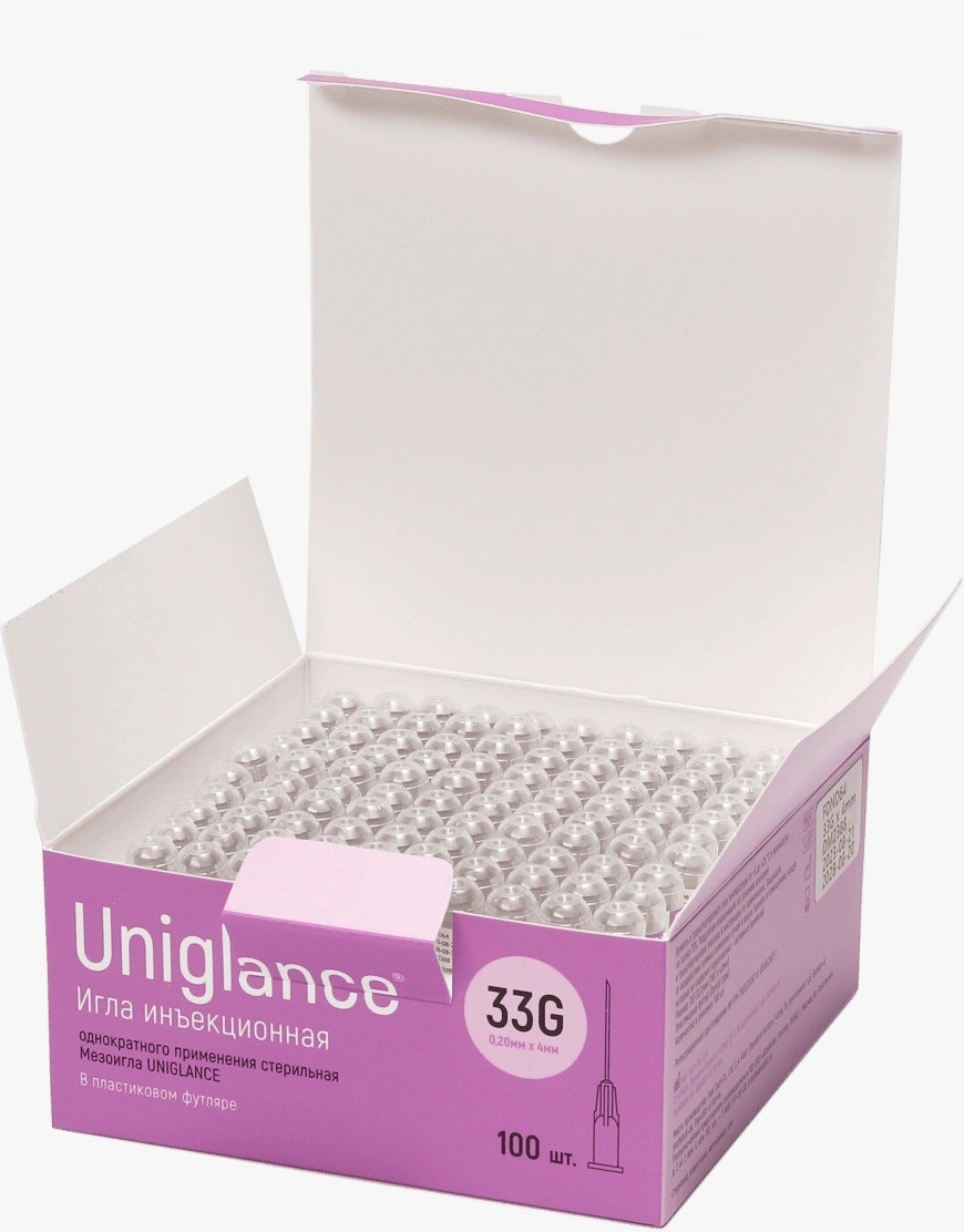 Игла инъекционная UNIGLANCE однократного применения стерильная 33G (0,20 мм [TW] x 4,0 мм) (10 шт/уп.)