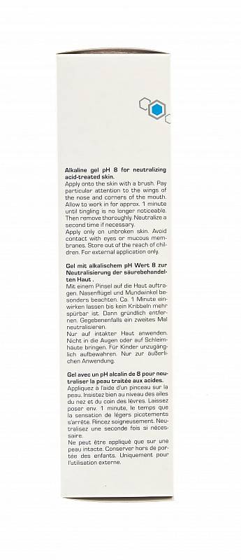 После строгого соблюдения времени экспозиции с помощью кисточки нанесите на кожу pH Neutralizer. Уделяйте особенное внимание крыльям носа и уголкам рта. Оставьте до полного исчезновения ощущения покалывания (приблизительно 1 минута) и тщательно смойте. При необходимости проведите нейтрализацию еще раз.