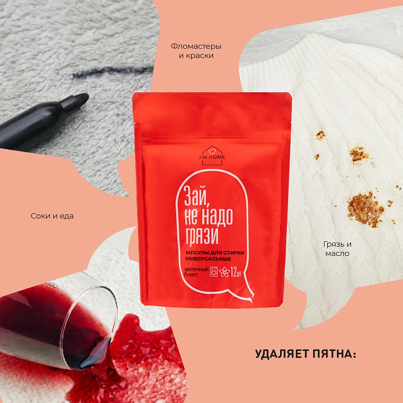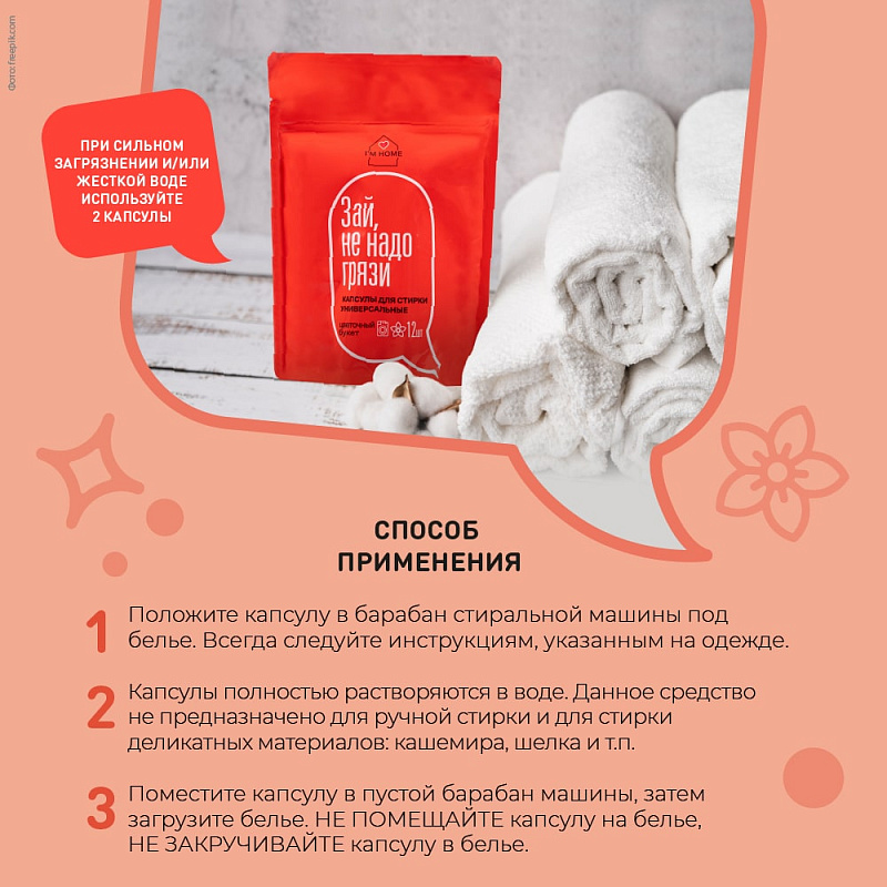 Универсальные капсулы для стирки «Зай, не надо грязи» цветочный букет, 12 шт