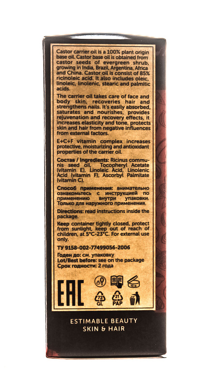 Косметическое натуральное масло 100% Касторовое 30 мл
