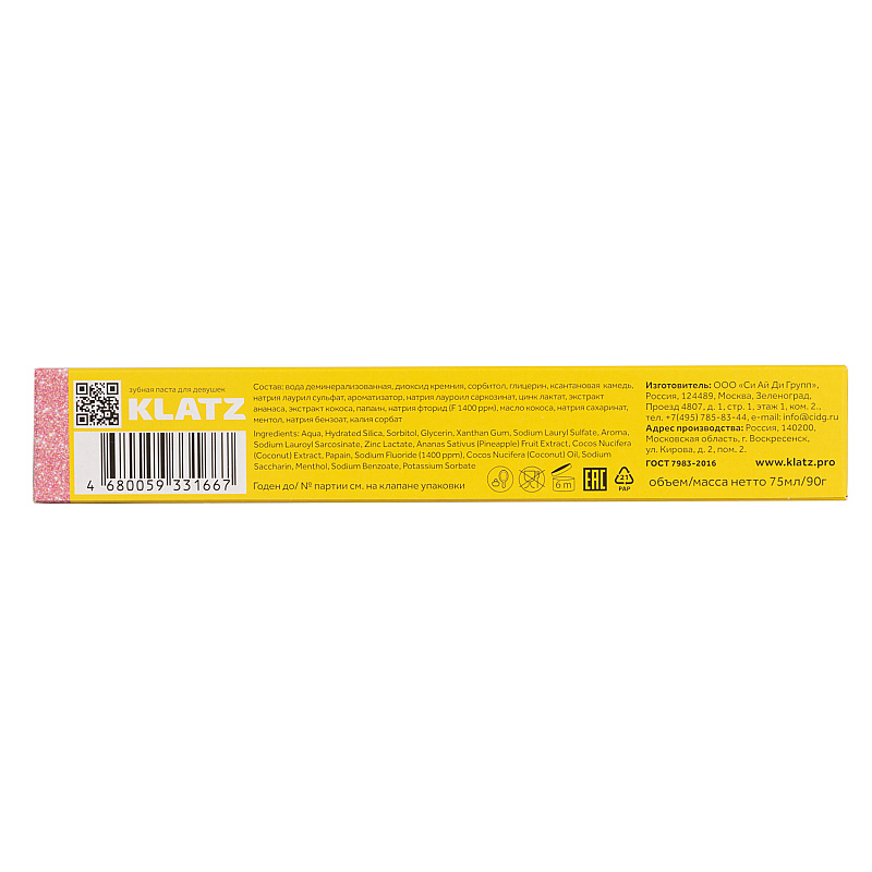 Зубная паста для девушек "Пина колада", 75 млПричина уценки:
