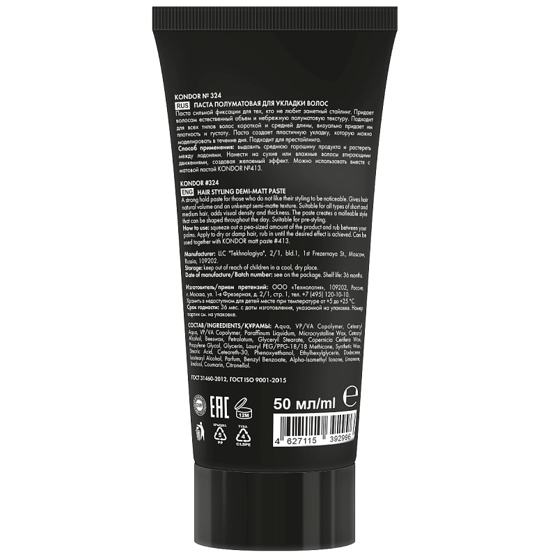 Паста полуматовая для укладки волос Demi-Matt Paste № 324, 50 мл