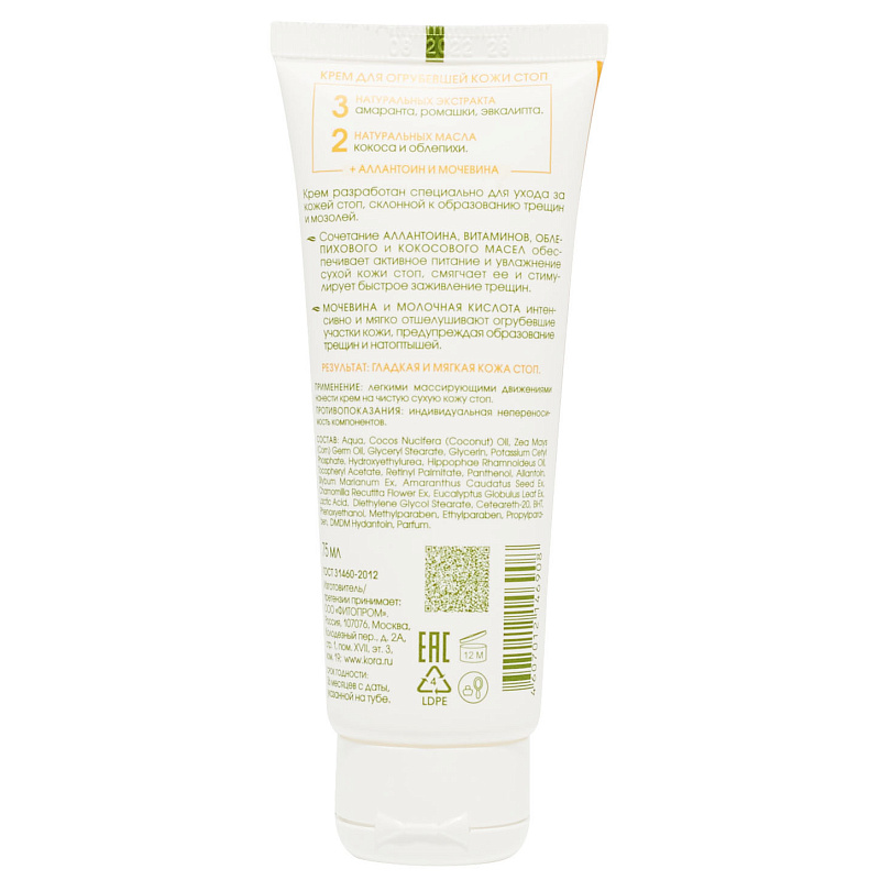 Крем для огрубевшей кожи стоп «Смягчение», 75 мл