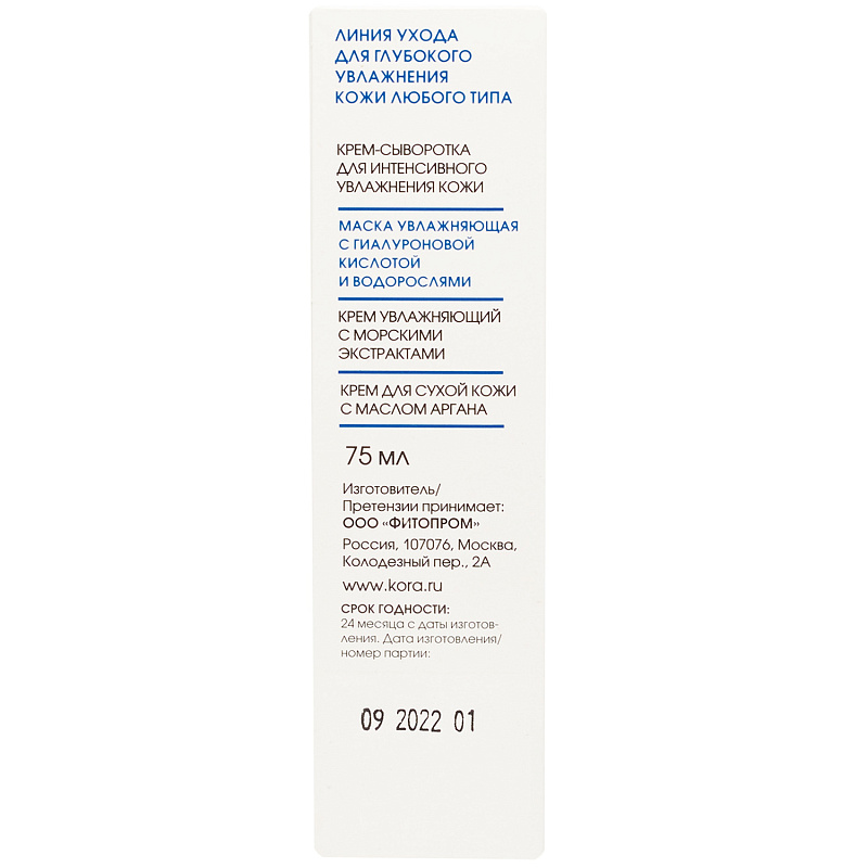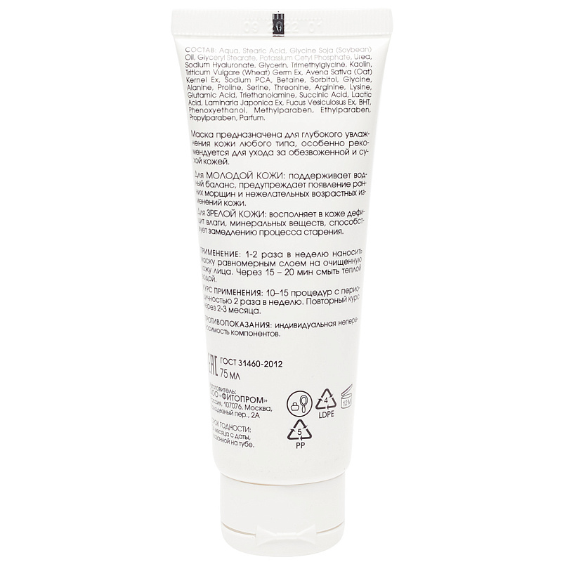 Маска увлажняющая с гиалуроновой кислотой и водорослями, 75 мл