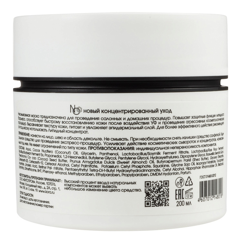 Состав: aqua, cocos nucifera (coconut) oil, glycerin, panthenol, lactobacillus/soymilk ferment filtrate, lactobacillus/rye flour ferment, bacillus/soybean ferment extract, propanediol, 1,2-hexanediol, butylene glycol, pentylene glycol , hydroxyethylurea, dipropylene glycol, boswellia serrata gum, theobroma cacao (cocoa) seed butter, prunus amygdalus dulcis (sweet almond) oil, butyrospermum parkii (shea butter), glyceryl stearate, ceteareth-20, ceteareth-12, cetearyl alcohol, cetyl palmitate, potassium cetyl phosphate, squalane, glycine soja oil, isopropyl myristate, tocopheryl acetate, linoleic acid, retinyl palmitate, pentaerythrityl tetra-di-t-butyl hydroxyhydrocinnamate, cetyl alcohol, hippophae rhamnoides oil, bisabolol, erythritol, dimethicone, внт, phenoxyethanol, methylparaben, ethylparaben, propylparaben, dmdm hydantoin, parfum.