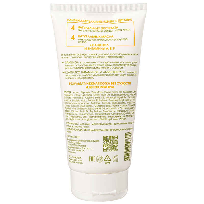 Сливки для тела "Интенсивное питание", 175 мл