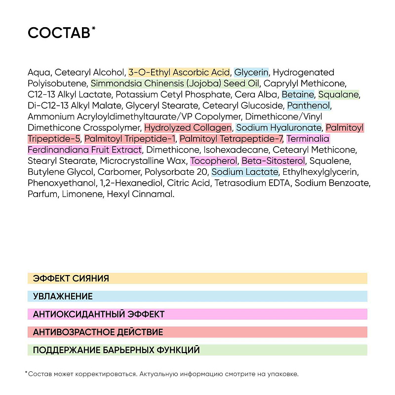 Выравнивает тон, осветляет пигментацию и улучшает цвет лица