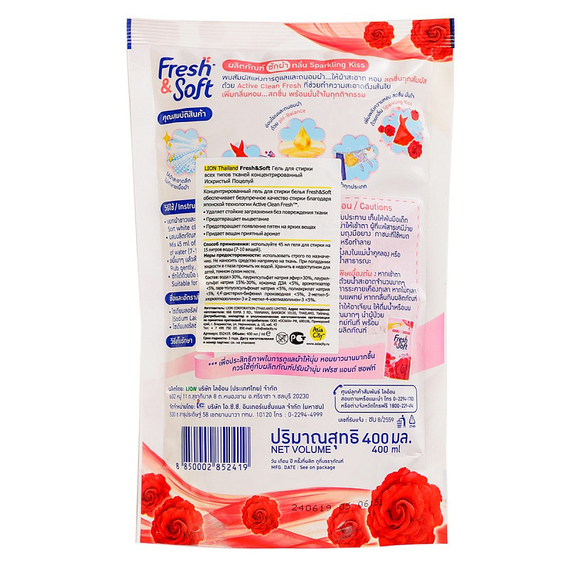 Концентрированный гель для стирки всех типов тканей "Искристый поцелуй", 400 мл