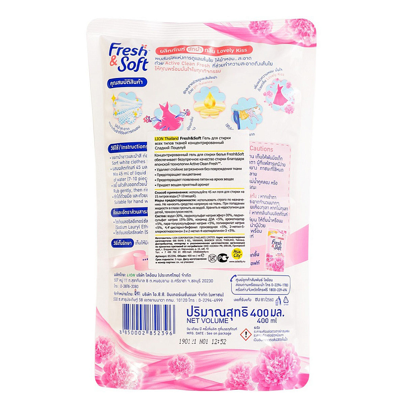 Концентрированный гель для стирки всех типов тканей "Сладкий поцелуй", 400 мл