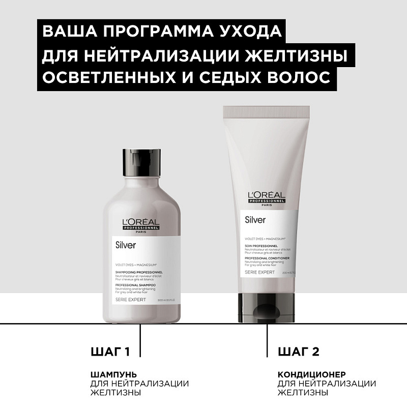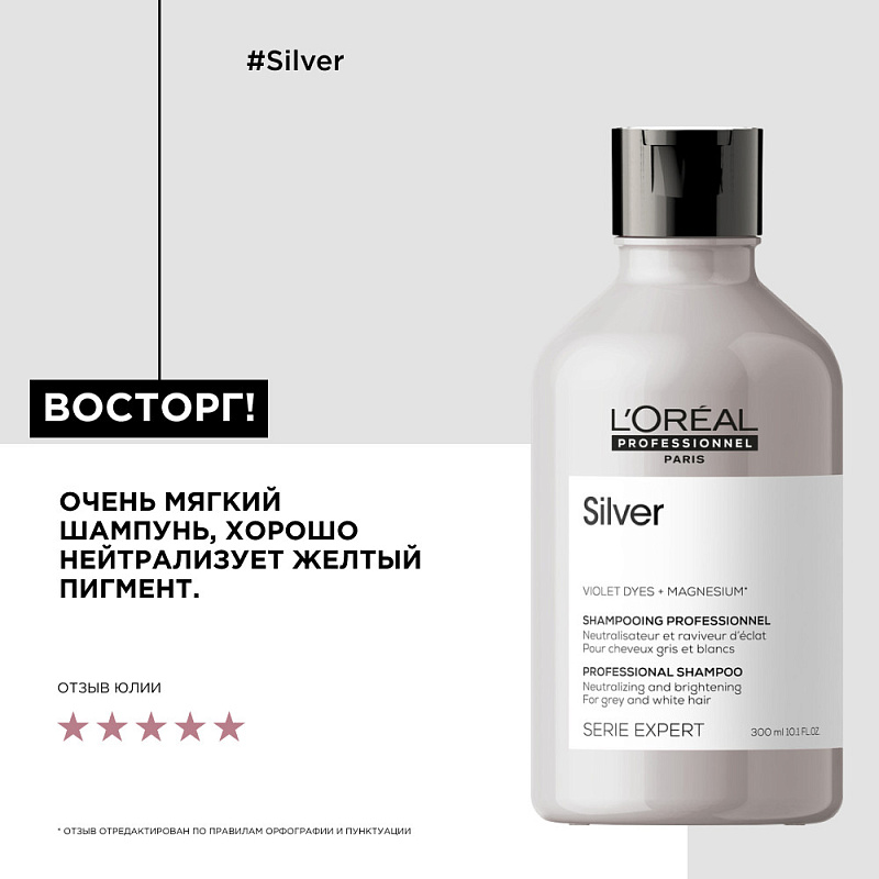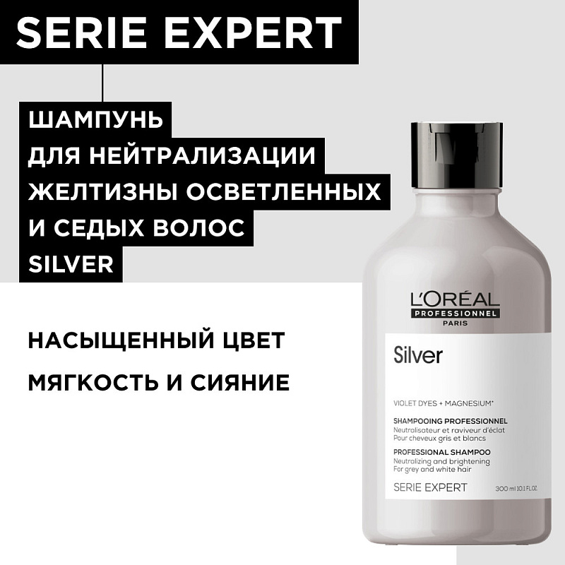 Шампунь для нейтрализации желтизны осветленных и седых волос Silver, 300 мл