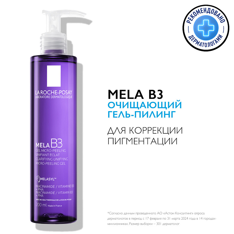 Очищающий гель-пилинг против пигментации для умывания кожи лица Mela B3, 200 мл