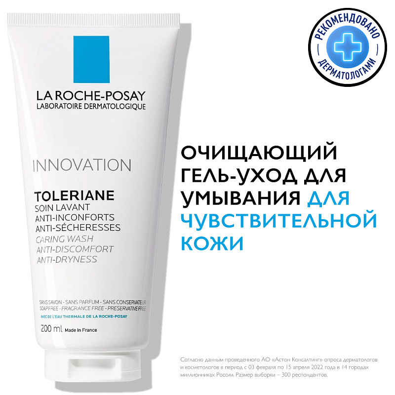 Очищающий гель для умывания для смягчения чувствительной кожи лица и тела Toleriane, 200 мл