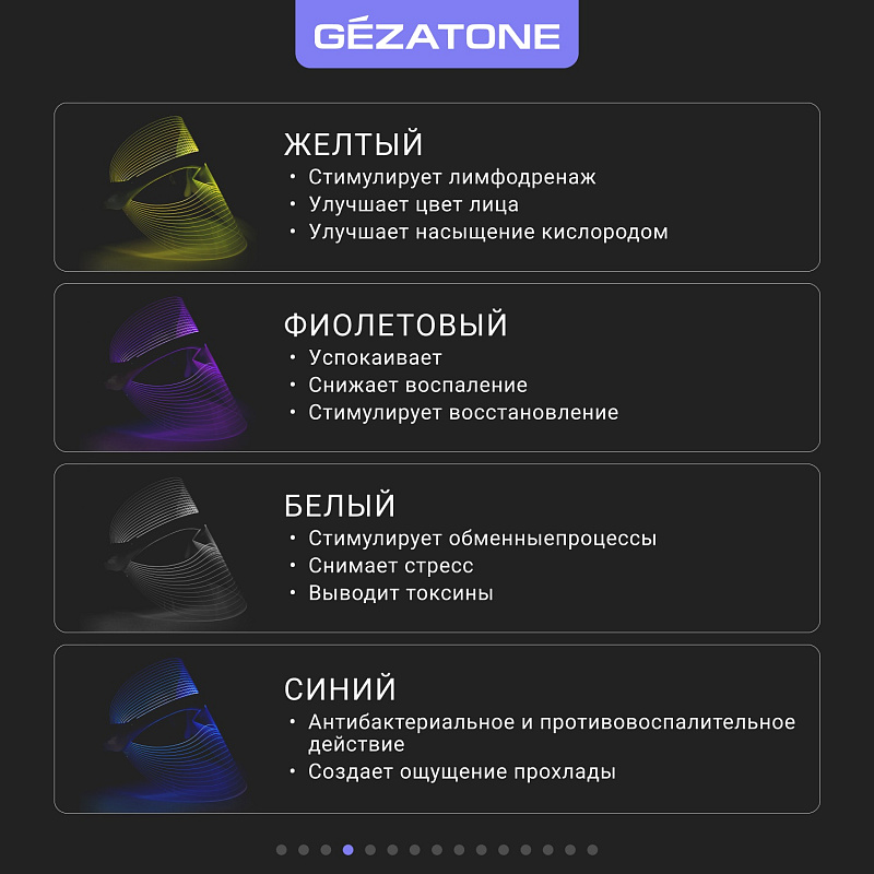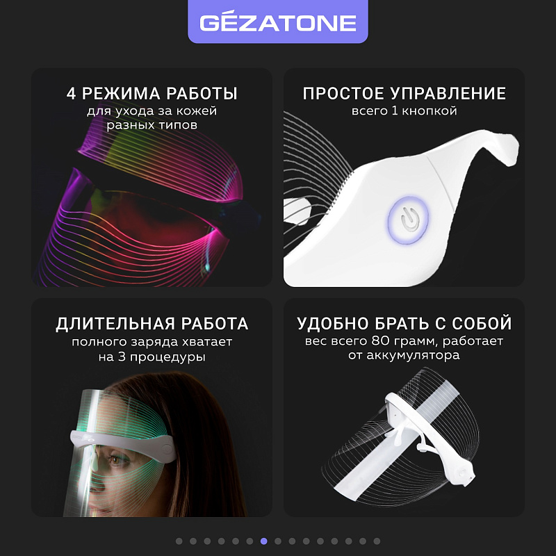 Маска для светотерапии с семью цветами светового спектра предназначена для омоложения и улучшения качества кожи, коррекции ее эстетических недостатков и профилактики возрастных изменений. Фототерапия помогает улучить происходящие в коже процессы, укрепляет ее собственные силы, снижает активность патогенной микрофлоры, вызывающей воспаления. А также помогает веществам из активной косметики лучше проникать в глубокие слои кожи, поддерживая правильный баланс влаги и питания.