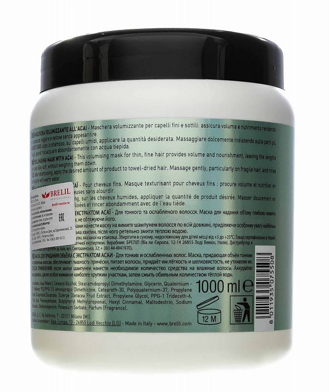 Маска Volumising Mask with Acai от бренда Brelil предназначена для тонких и ослабленных волос. После применения маски волосы легко расчесываются и легче поддаются укладке, приобретают дополнительную силу и объем. Специально разработанный состав маски питает волосы, наполняя их жизненной силой. Делает волосы блестящими и шелковистыми, без эффекта утяжеления.