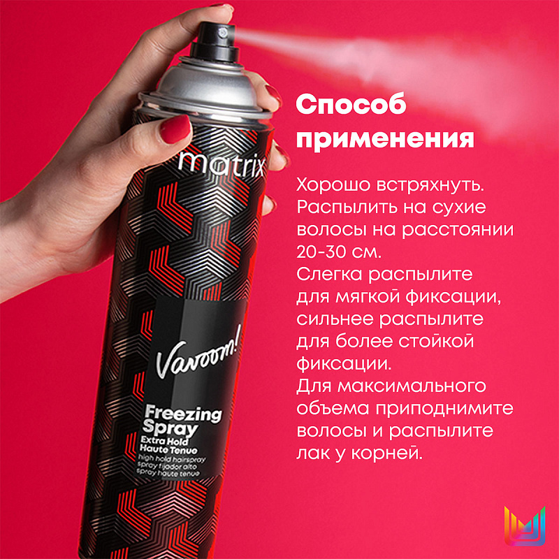 Хорошо встряхнуть. Распылить на сухие волосы на расстоянии 20-30 см. Слегка распылите для мягкой фиксации, сильнее распылите для более стойкой фиксации.