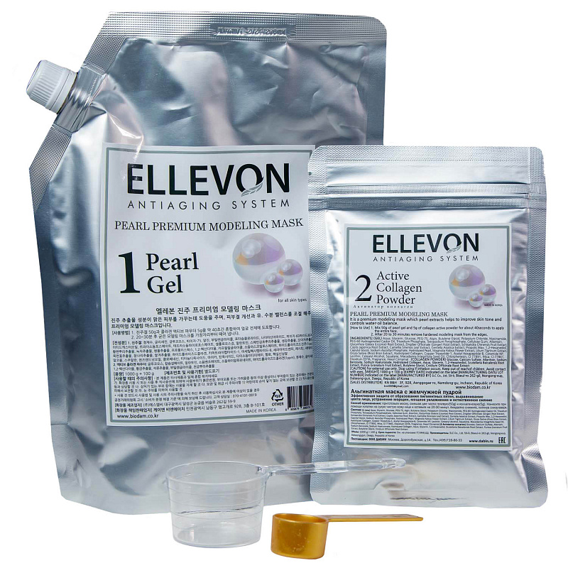 Двухкомпонентная альгинатная маска премиум с жемчугом: гель 1000 мл + коллаген 100 мл