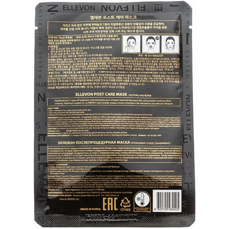После очищения кожи лица нанести тоник для восстановления рН баланса. Открыть упаковку и достать тканевую маску. Расправить и наложить маску на лицо, разглаживая складки. Удалить маску после 10-20 минут и деликатно вбить остатки эссенции кончиками пальцев.