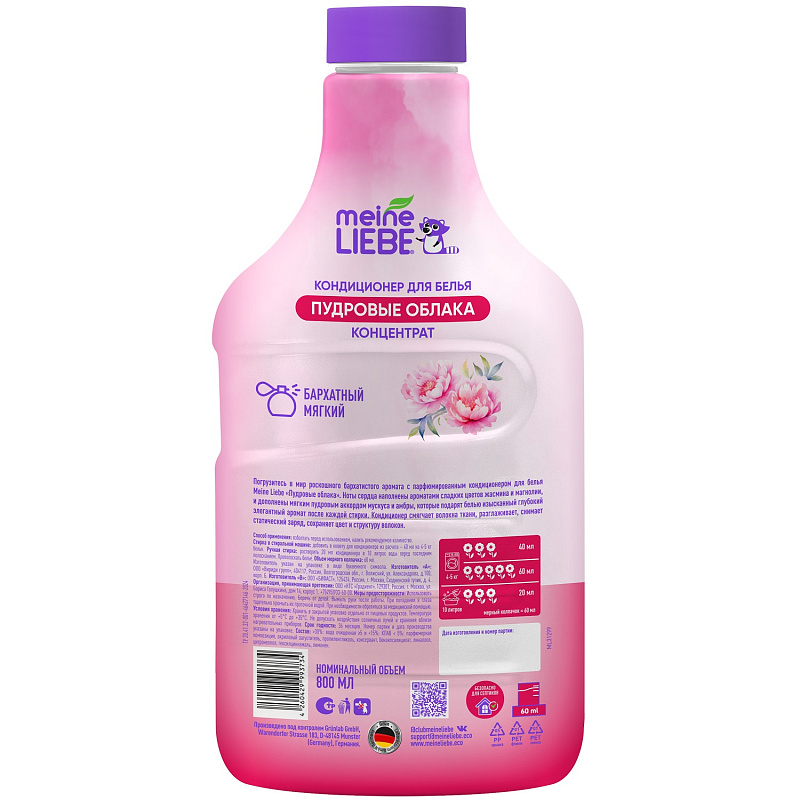 Кондиционер-концентрат для белья «Пудровые облака», 800 мл