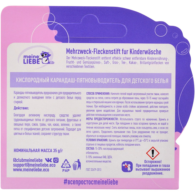 Кислородный карандаш-пятновыводитель для детского белья 0+, 35 гр