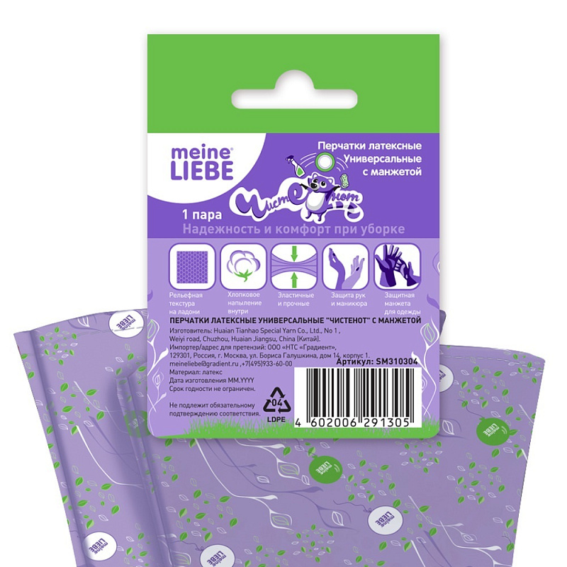 Универсальные хозяйственные латексные перчатки с манжетой "Чистенот", размер M
