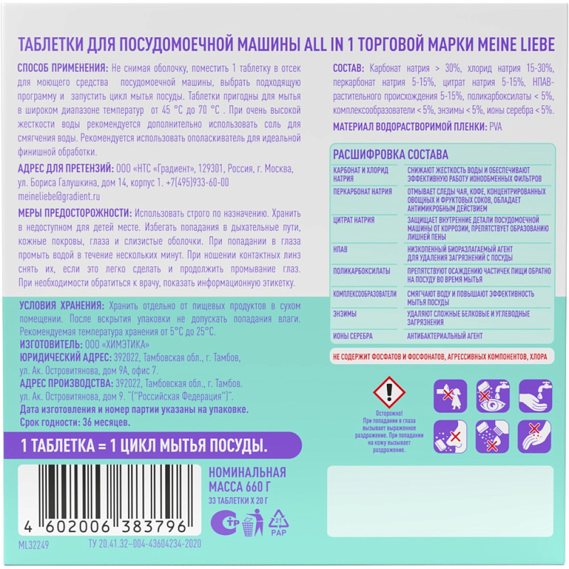Таблетки для посудомоечных машин All-in-One, 33 шт