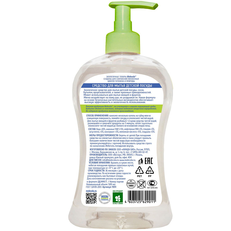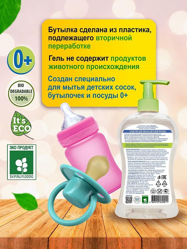 Средство для мытья детской посуды для чувствительной кожи, экологическое, 500 мл