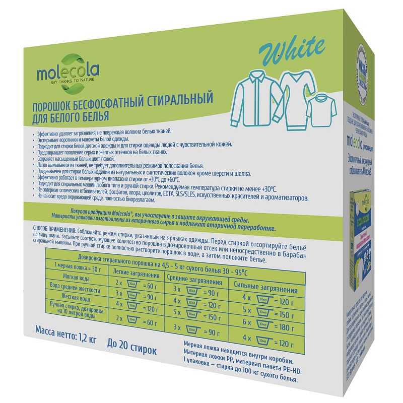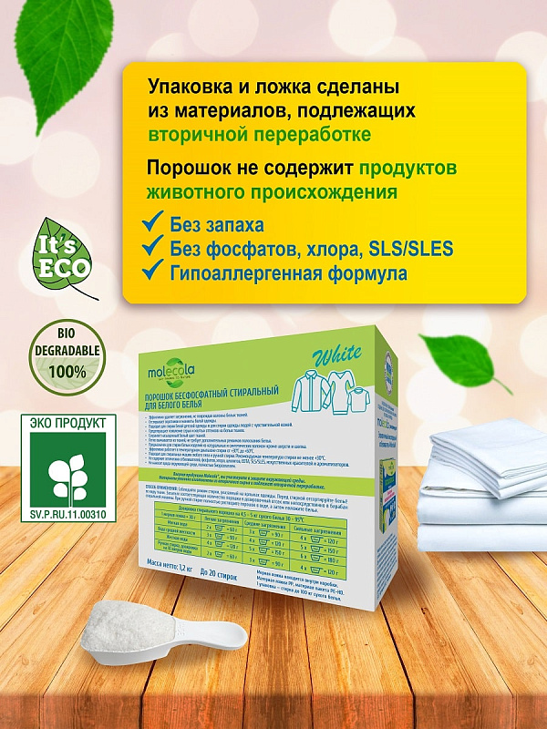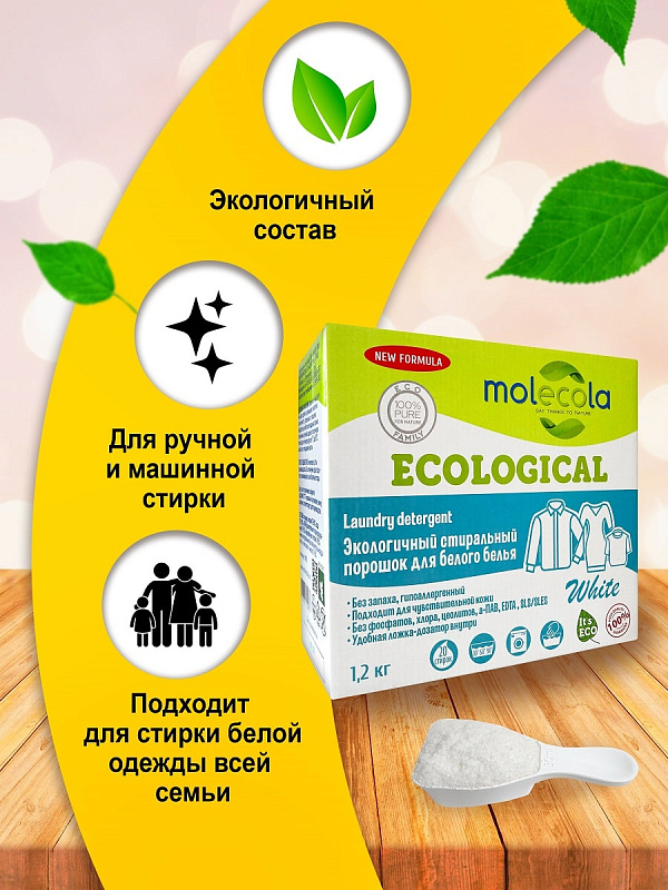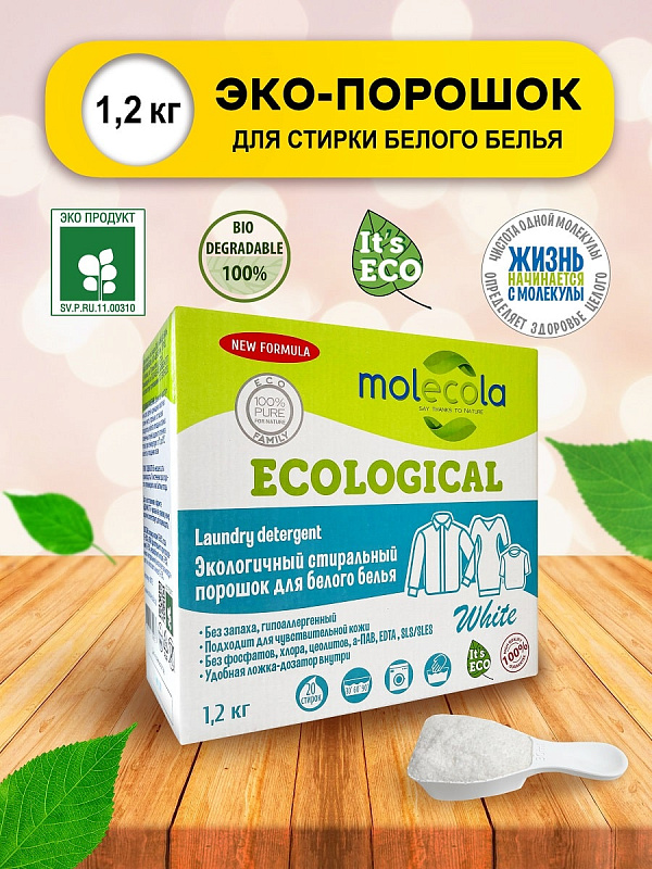 Стиральный порошок для белого белья с растительными энзимами, экологичный, 1200 гр