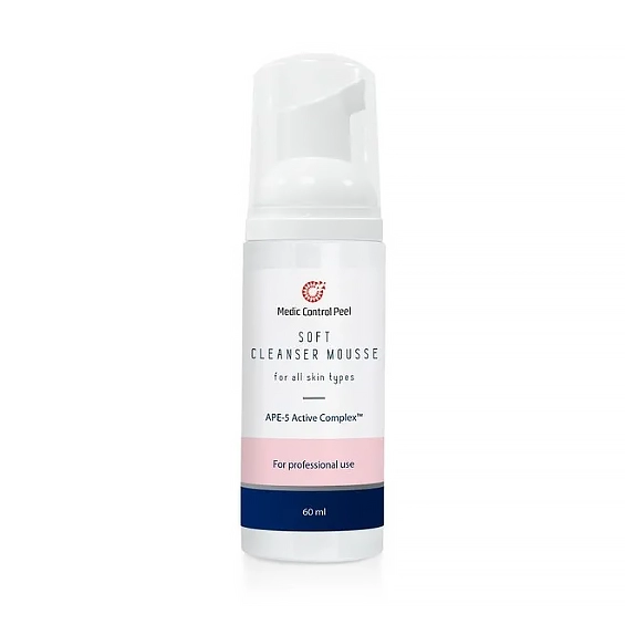 Soft Cleanser Mousse – мусс для деликатного очищения кожи в постпилинговом периоде, а также после других агрессивных косметологических процедур (лазерных шлифовок, микродермабразии). Он мягко удаляет загрязнения и отслоившиеся частички кожи. Благодаря входящему в состав активному комплексу APE-5 Active Complex, содержащему в себе 40% Д-пантенола, растительные экстракты алоэ, ромашки, коры дуба и ивы, мусс: