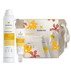 Набор солнцезащитный средств Repaskin в косметичке: спрей для тела SPF50 200 мл + средство для лица SPF50 50 мл