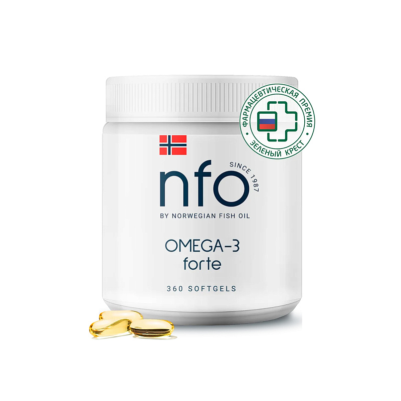 NFO® Omega-3 Forte (НФО Омега-3 Форте) – натуральный высокоочищенный рыбий жир в желатиновых капсулах без запаха и вкуса с высокой концентрацией Омега-3 в одной капсуле для укрепления здоровья взрослых и детей с 3х лет.