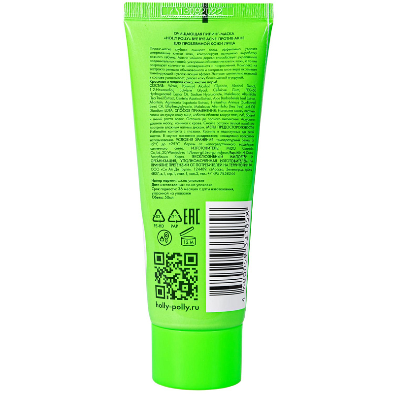 Очищающая пилинг-маска против акне и воспалений, 50 мл