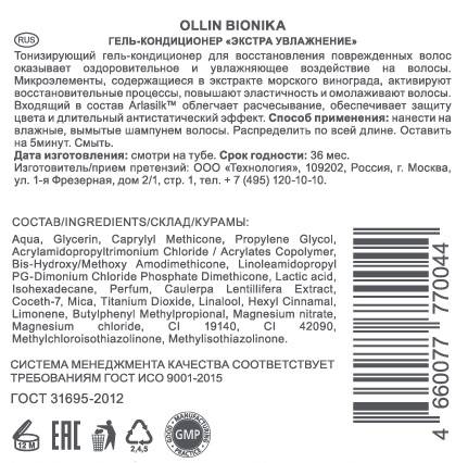 Гель-кондиционер Экстра увлажнение BIONIKA - тонизирующий кондиционер для восстановления поврежденных волос оказывает оздоровительное и увлажняющее воздействие на волосы. Микроэлементы, содержащиеся в экстракте морского винограда, активируют восстановительные процессы, повышают эластичность и омолаживают волосы. Входящий в состав Arlasilk™ облегчает расчесывание, обеспечивает защиту цвета и длительный антистатический эффект.