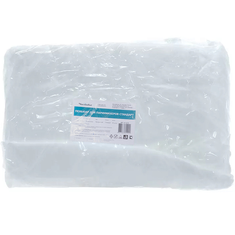 Пеньюар для парикмахеров полиэтиленовый Стандарт Прозрачный 160х100, 1 х 50 шт