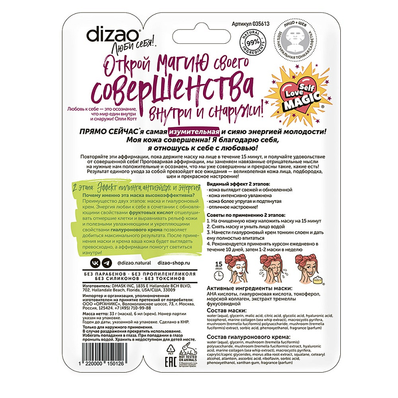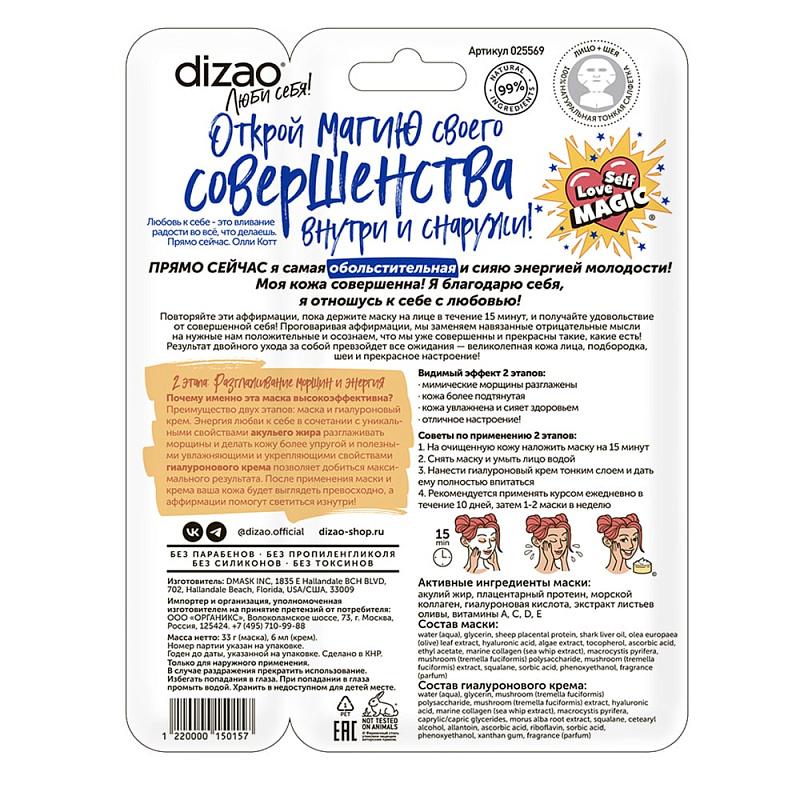 Премиальный набор "Изобилие": маска для лица и шеи 4 шт + патчи для глаз 3 пары