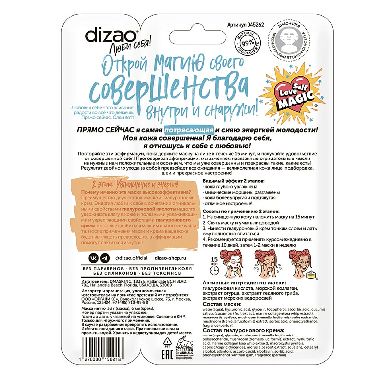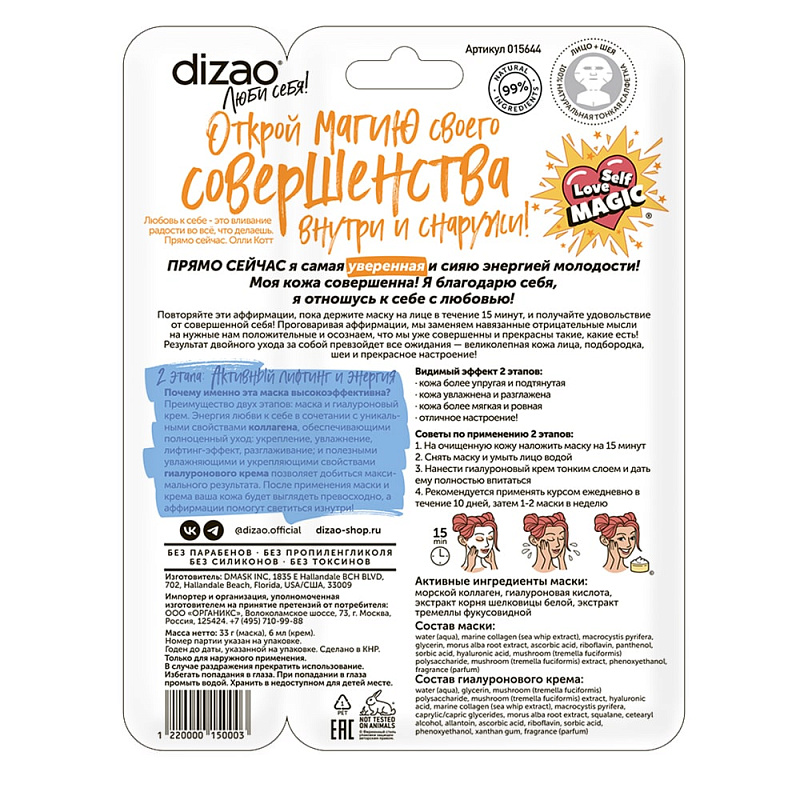 Премиальный набор "Процветание": 2 маски для лица и шеи + патчи для глаз 2 пары + ботопатч для лба