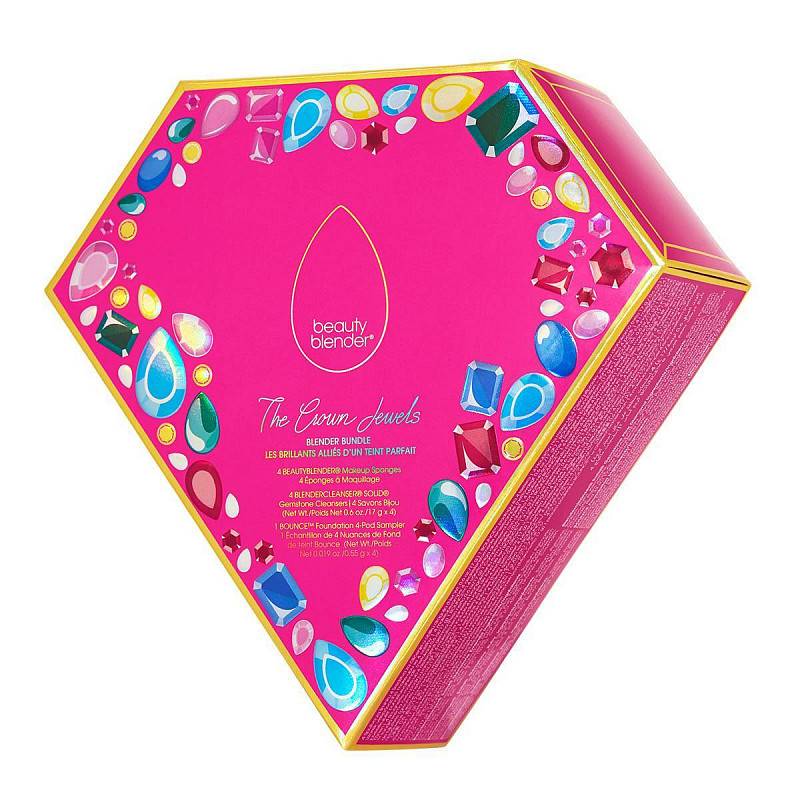 Драгоценная коллекция beautyblender®. Набор The Crown Jewels – это 4 спонжа для макияжа beautyblender®: original (розовый), emerald (зеленый), ruby (красный), topaz (синий), 4 мини-мыла blendercleanser в виде драгоценных камней.