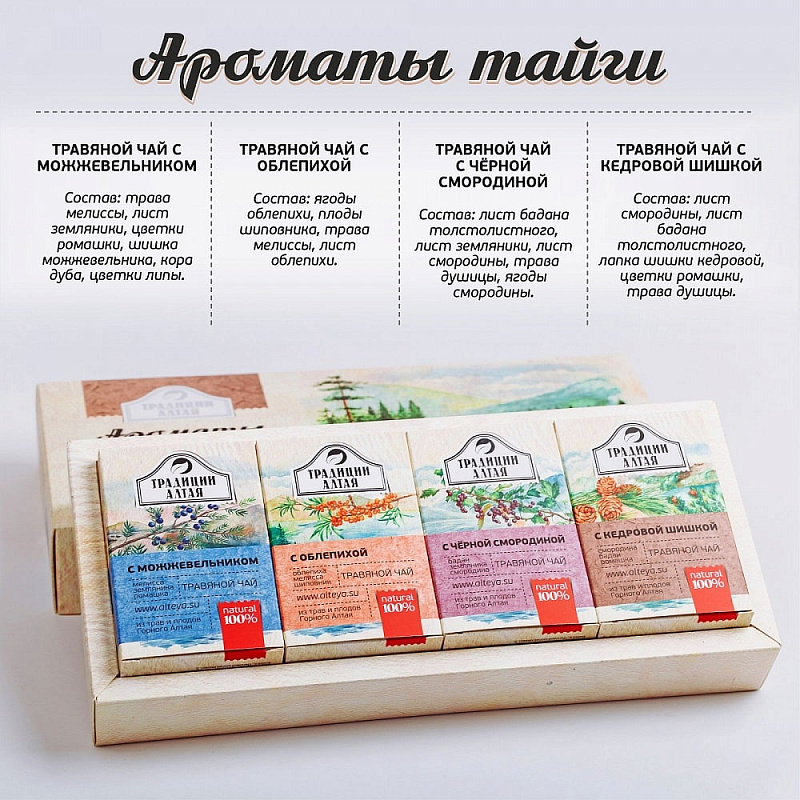 Подарочный набор травяных чаев "Ароматы тайги", 4 х 50 гр