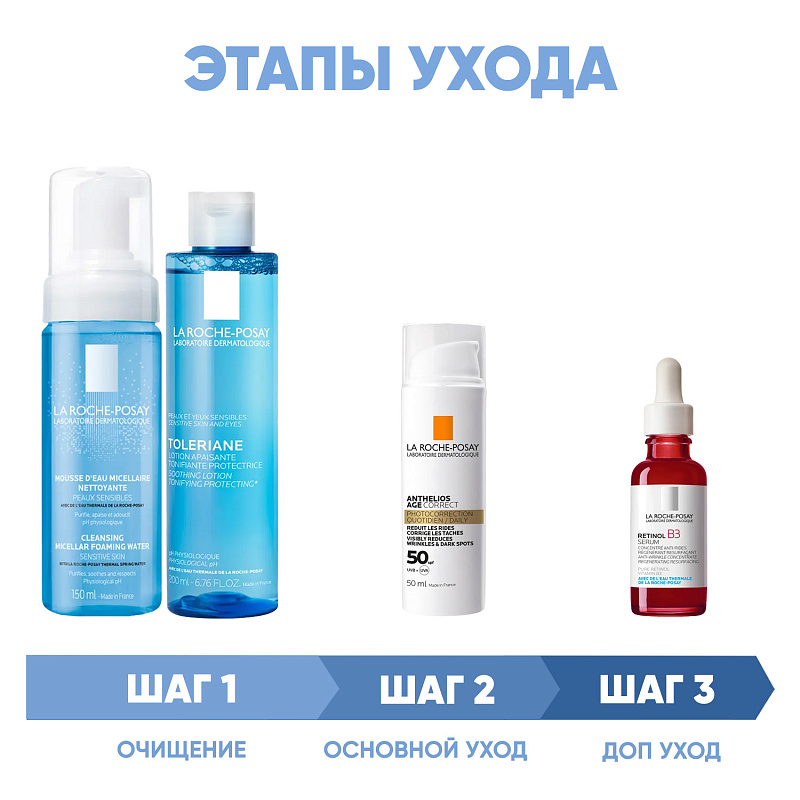ПРОГРАММА КОМПЛЕКСНОГО УХОДА La Roche-Posay Redermic Retinol для борьбы с признаками старения лица. Комплексный уход представляет собой дополняющие друг друга средства, совместное использование которых будет максимально эффективным. Первым шагом программы является очищение, вторым - основной уход. В третий шаг вошли дополнительные средства, усиливающие эффект основной программы и применяемые постоянно или периодически на различных этапах ухода. Набор не имеет внешней упаковки, товары в заказы вкладываются по отдельности.