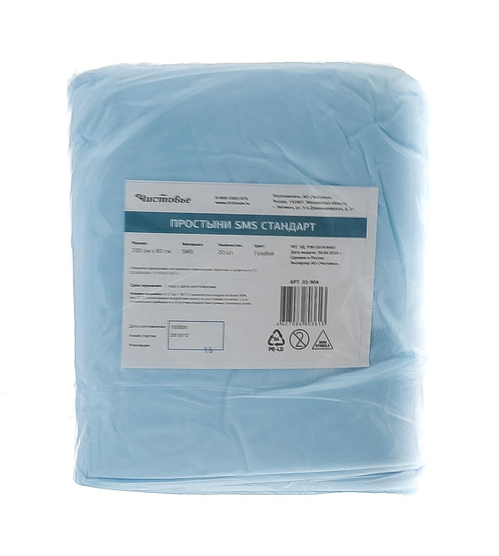 Простыня SMS Стандарт Голубой 200 х 80, 1 х 20 шт