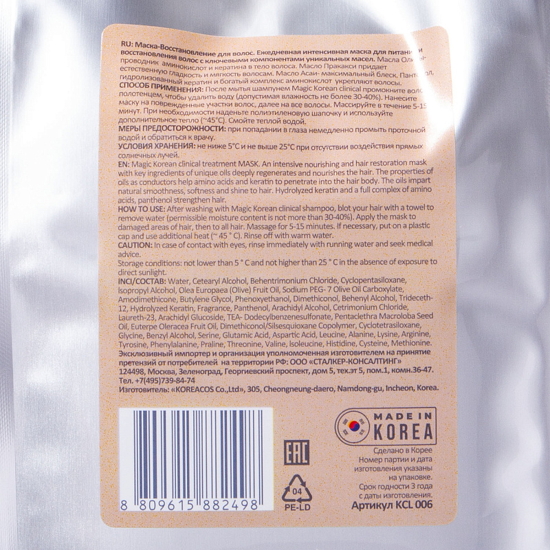 Интенсивная маска для питания и восстановления волос Magic Korean Clinical Treatment, 1000 мл