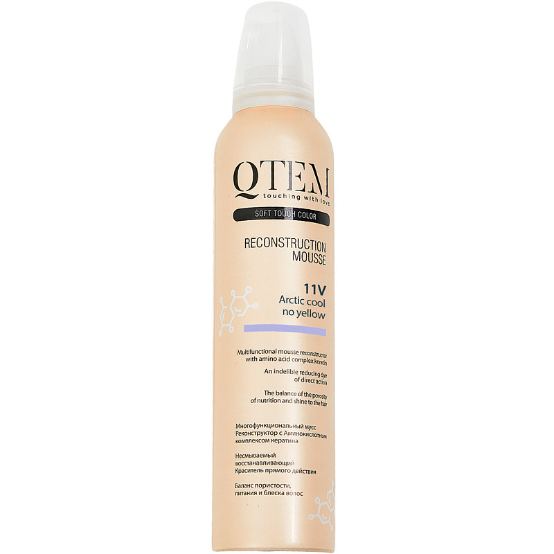 Тонирующий мусс реконструктор Soft Touch Color от бренда QTEM - это семи-перманентный краситель для восстановления и защиты волос с нейтрализацией нежелательных желтых оттенков светлых волос. Средство создает защиту и оживляет волокна волос до и после химических обработок, обеспечивает баланс пористости, питания и блеска волос. Мусс-реконструктор обладает мгновенным результатом и не требует смывания водой.